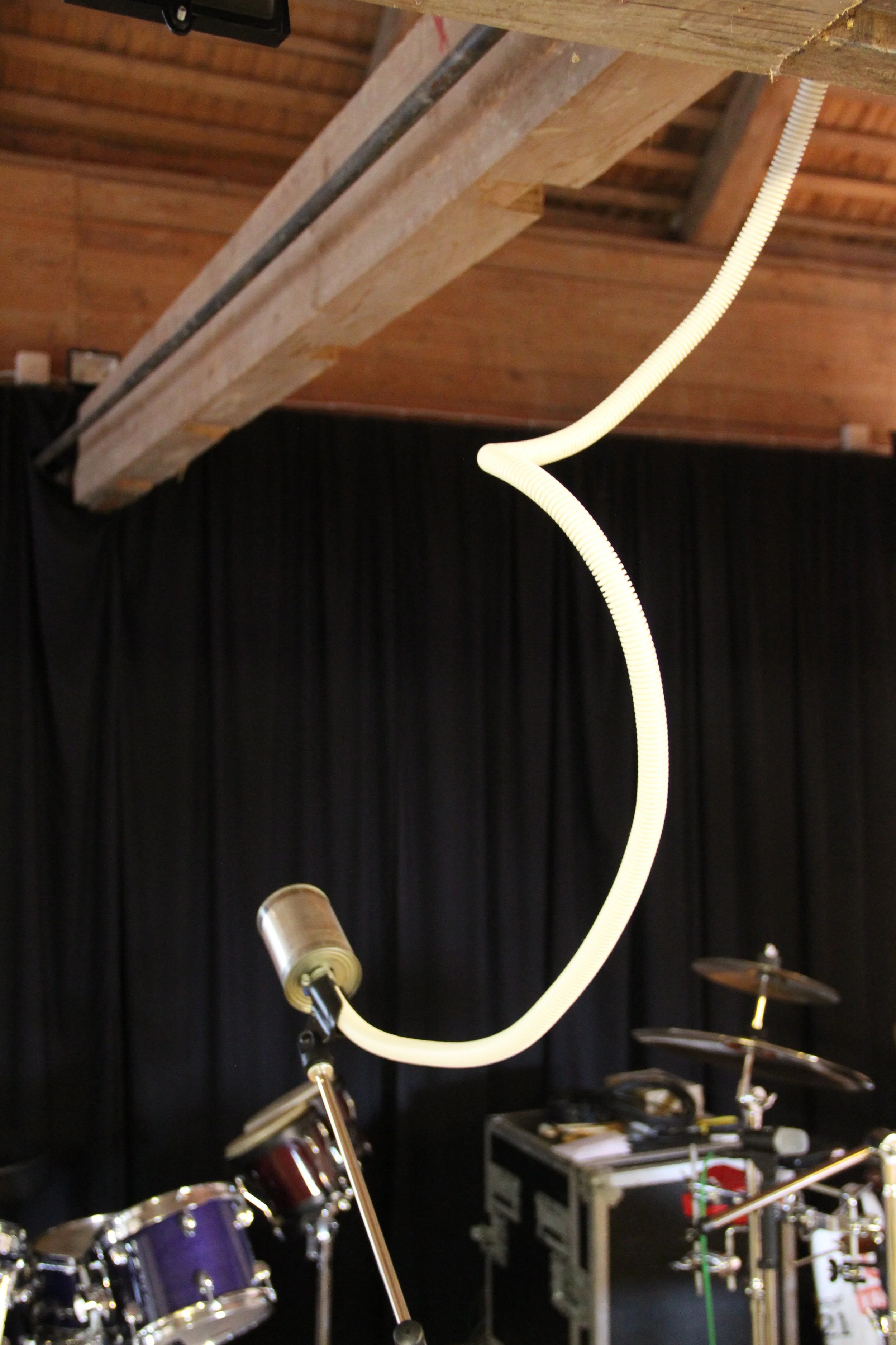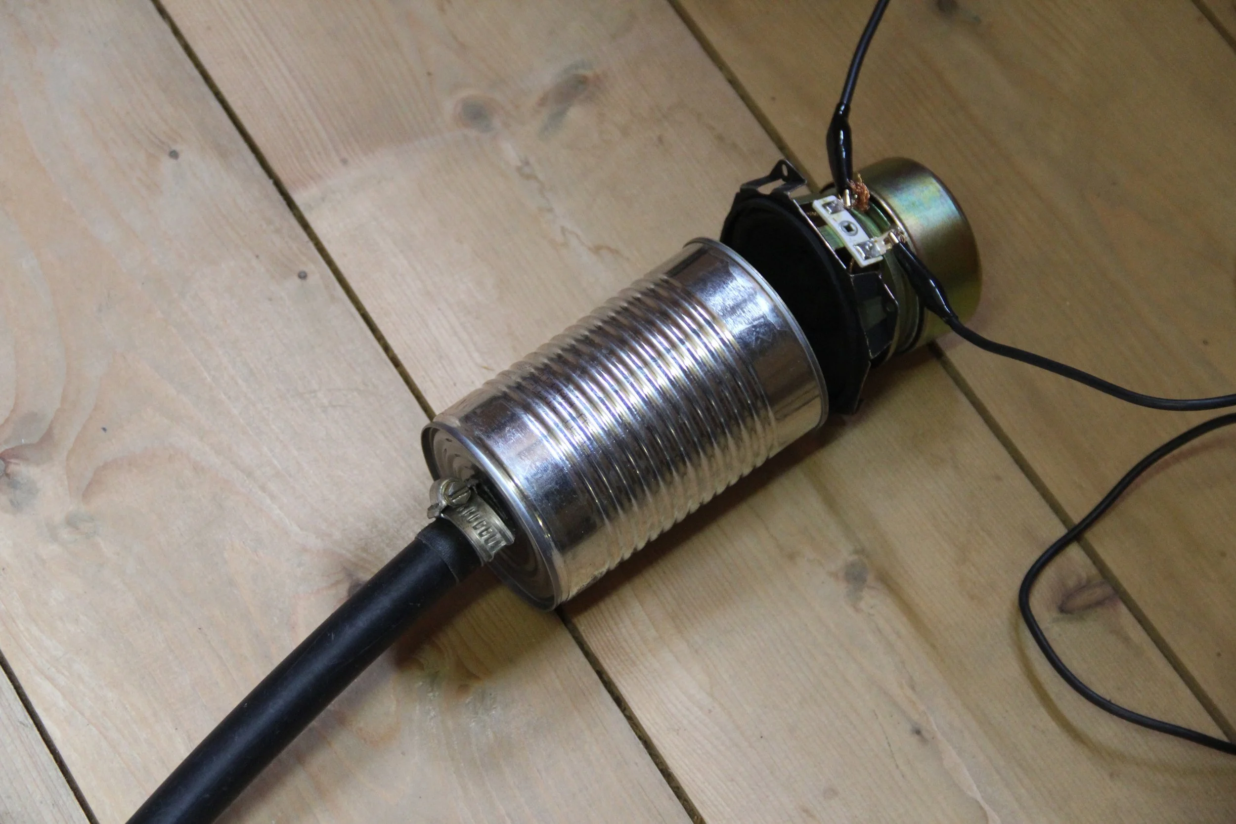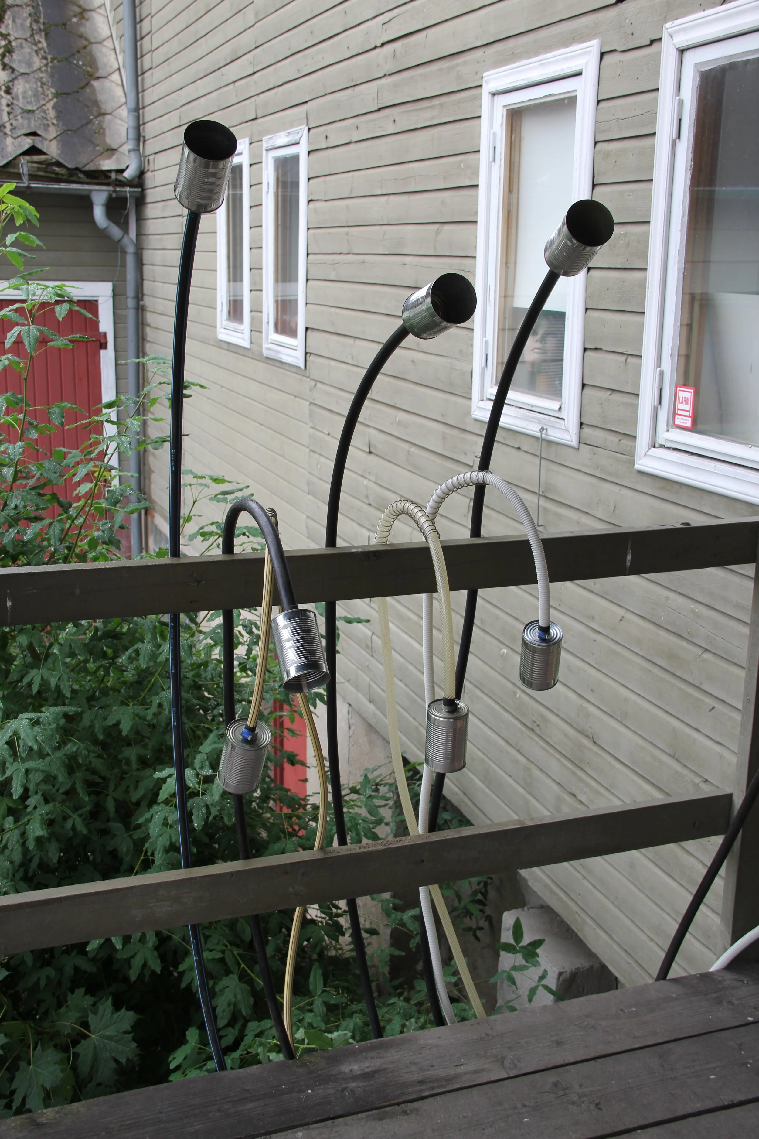 Almost Everywhere consists of a network of tubes routed through existing interior and exterior holes left by previous renovations to the mill. These tubes gather at one end in a listening station located outside the building and at the other end distributed near sound installations inside the mill. Tin cans attached to the ends of the tubes allow you to put your ear up to the piece and hear a selection of artworks in real time.