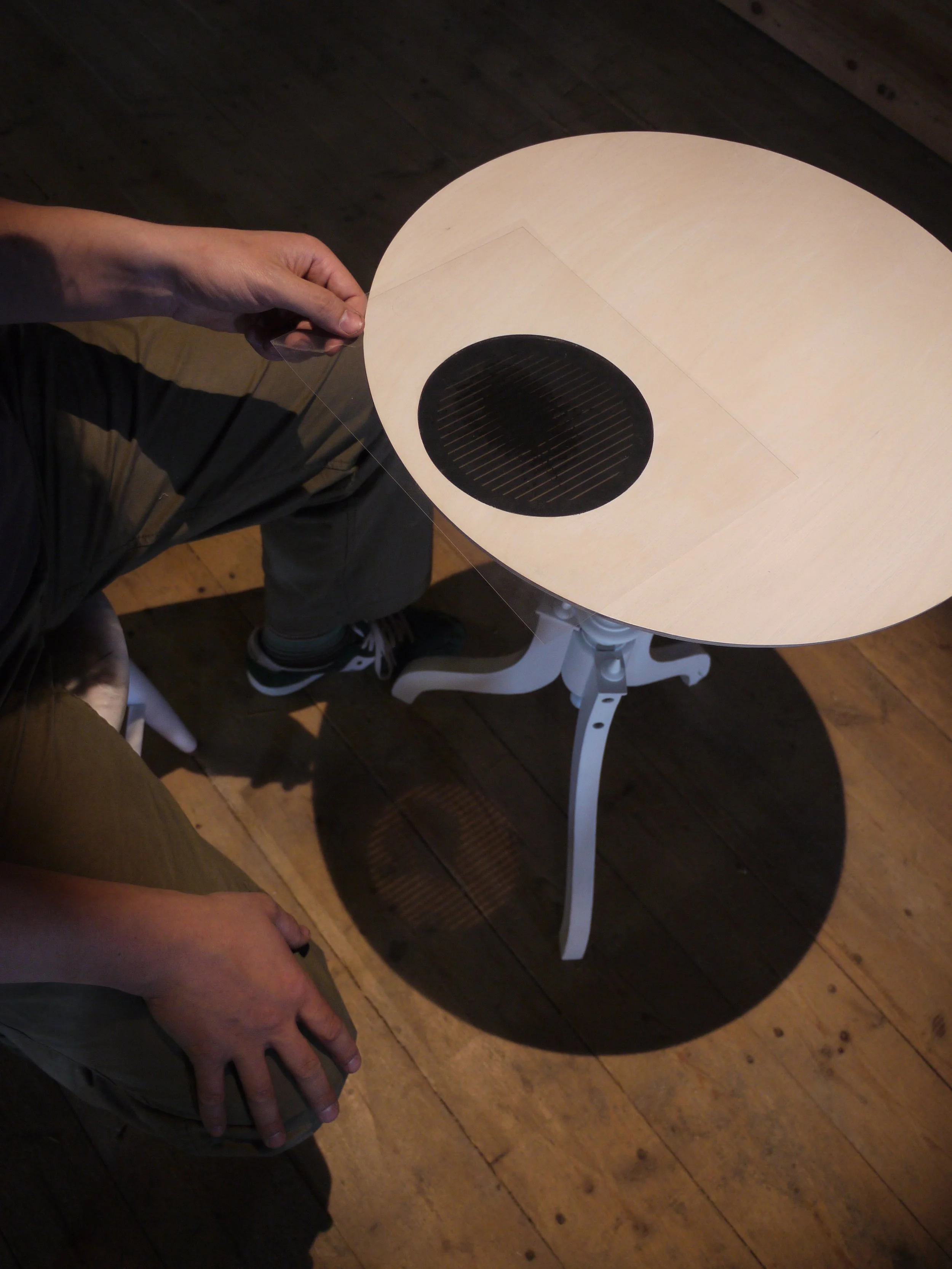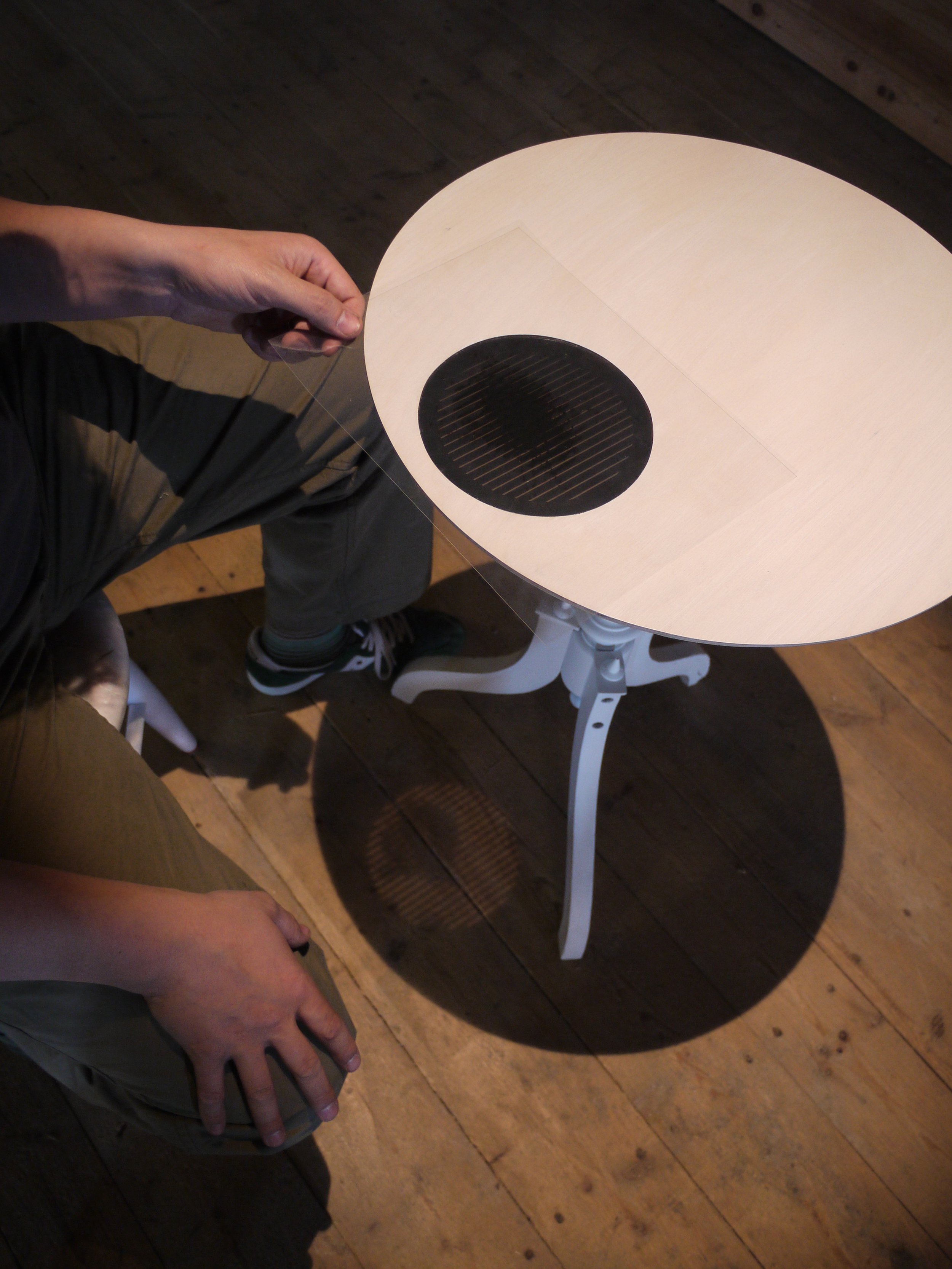 This is an old technology that, because it’s so simple, never gets old. A collection of different transparencies can be moved over the surface to create a short looping animation with a 3D quality to it. It requires being active and in the present to see them.